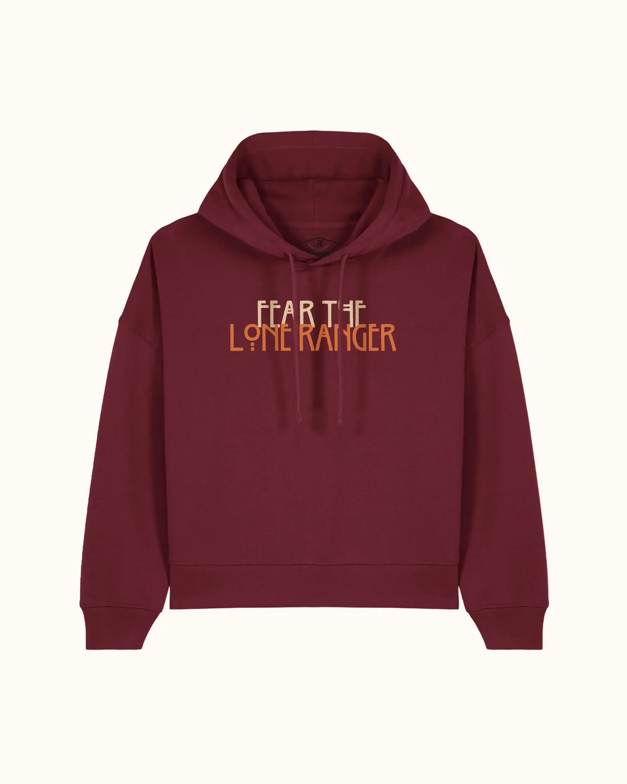 Der LONE RANGER Damen Cropped Hoodie in Burgunder ist dafür gemacht, Dein Lieblingsstück zu werden – entworfen mit Komfort und Western-Vibes im Hinterkopf.