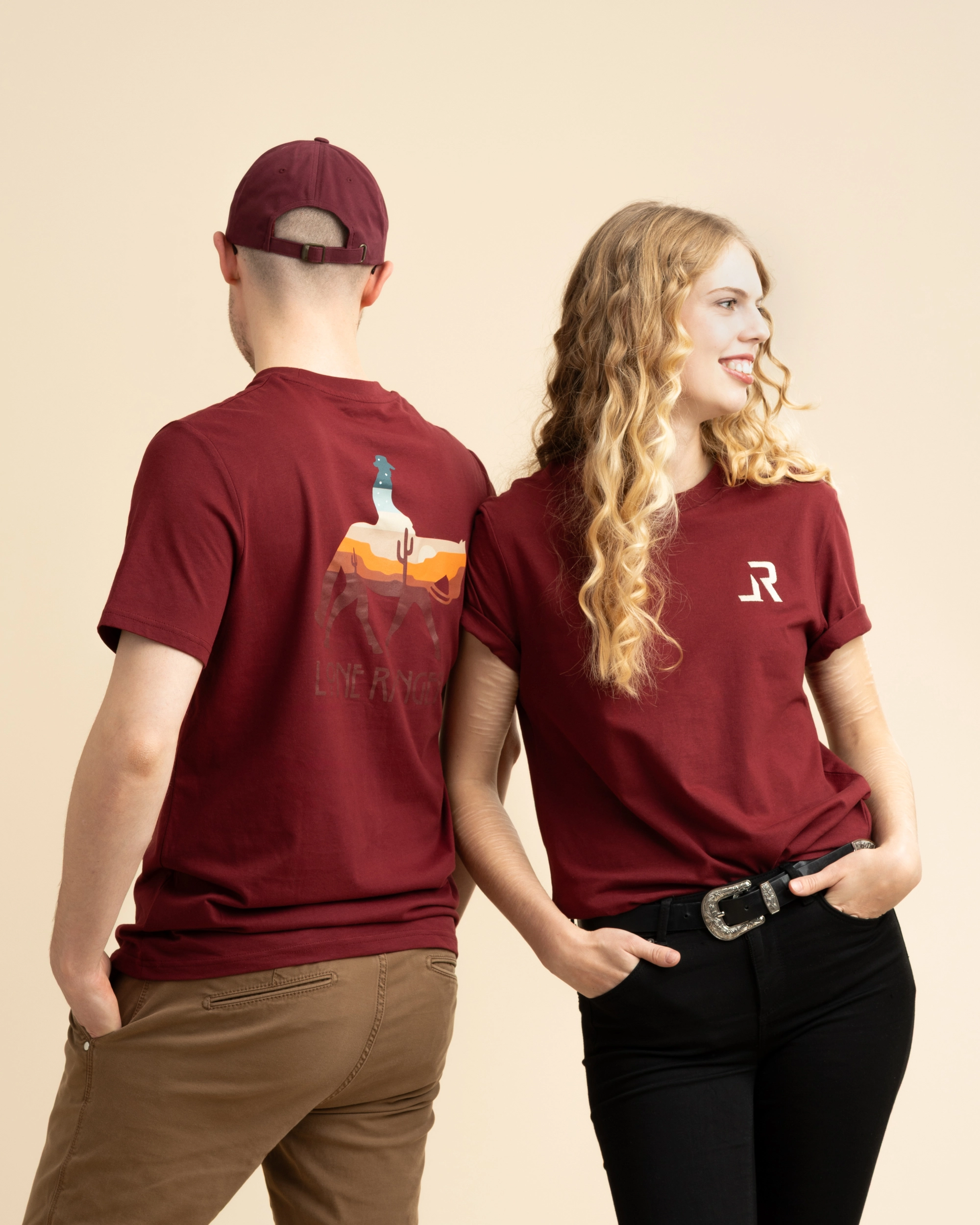 Ride with the Western Spirit – hol Dir jetzt dein LONE RANGER T-Shirt in Burgundy.