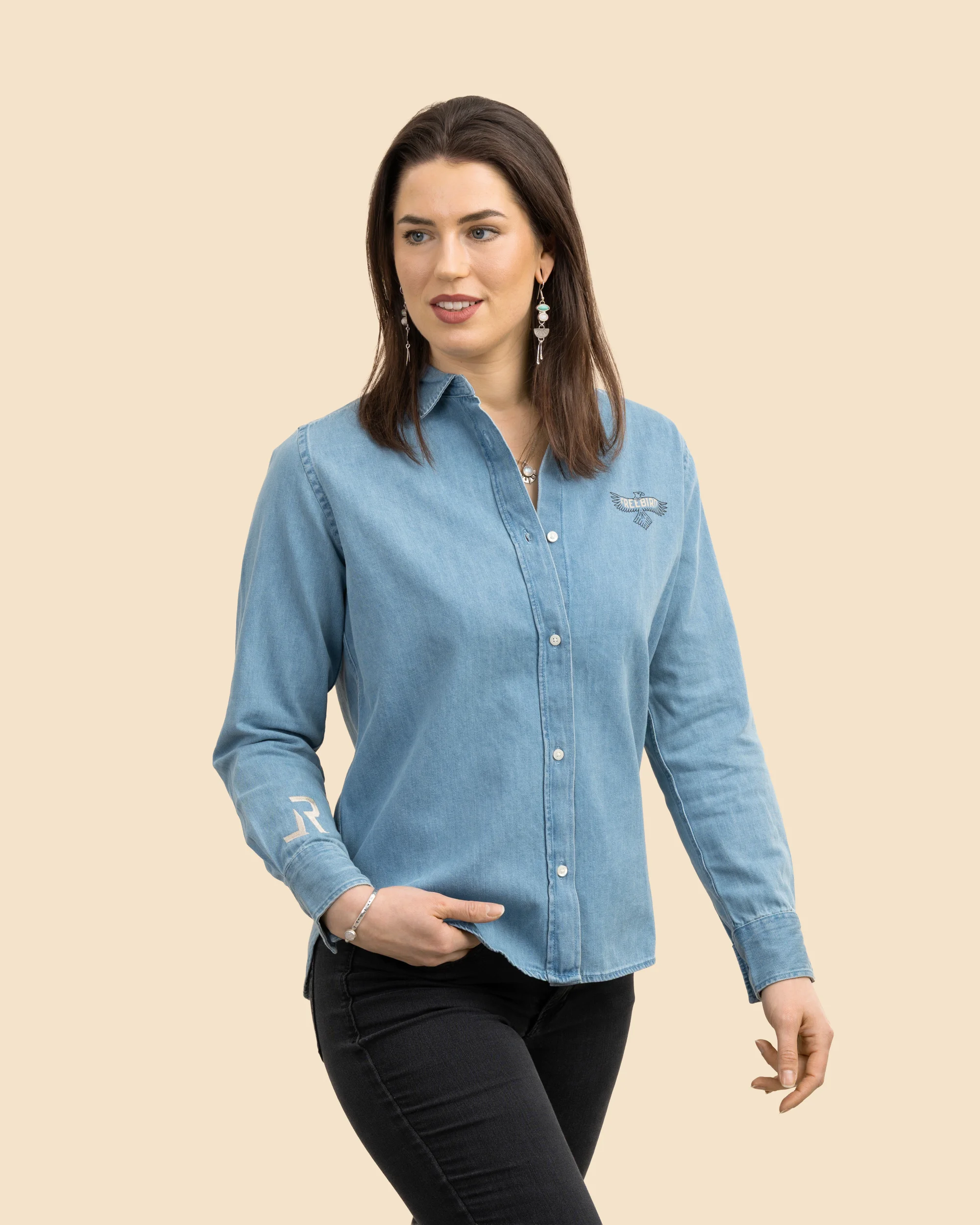 The FREEBIRD Women’s Denim Shirt in Light Denim is designed to be worn your way, season after season.