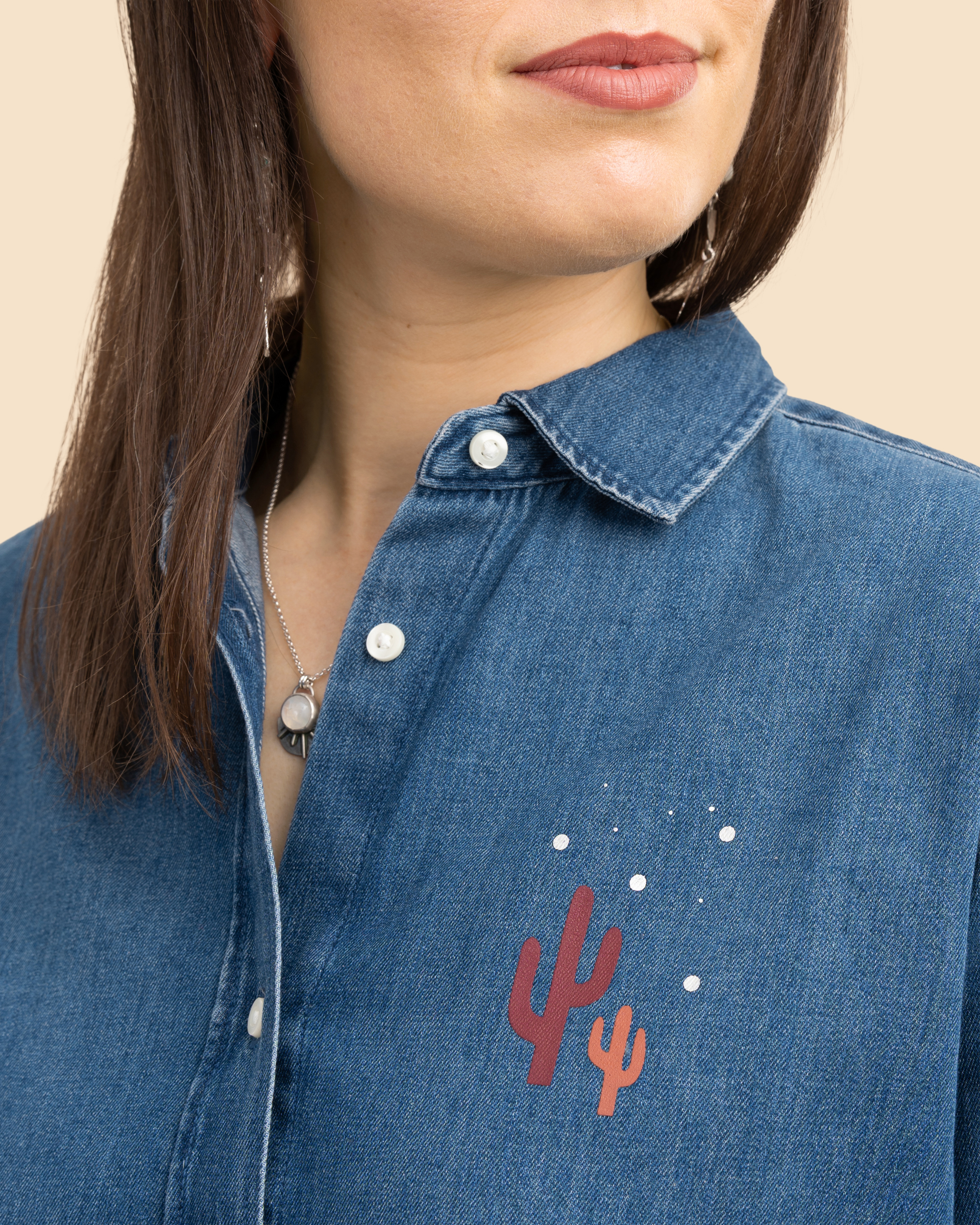 The LONE RANGER Women’s Denim Shirt in Denim combines a feminine fit with bold Western design. Made from the same robust, indigo-dyed organic cotton denim as our unisex version, it offers durability, comfort and a sustainable approach to modern denim.