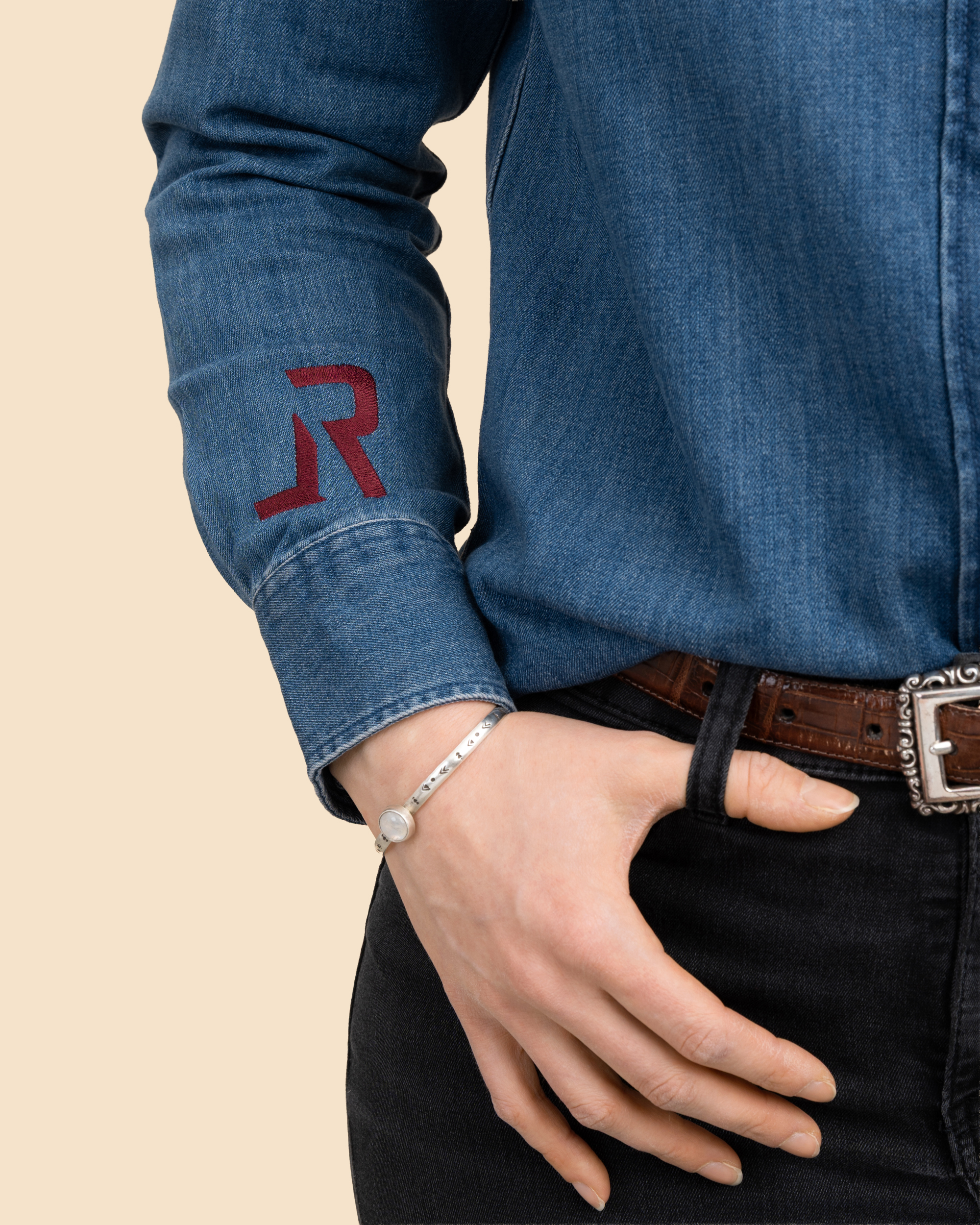 Distinctive details give this piece its character: a red LR logo embroidered on the right sleeve, a casual cactus and star artwork printed over the heart, finished with a special silver foil that adds a subtle shimmer, and a LONE RANGER print placed across the upper back for a confident Western statement.